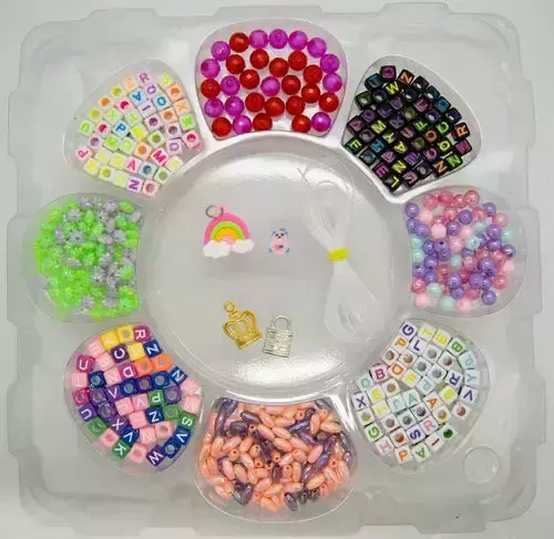 Com uma variedade de contas coloridas e letras, você pode criar bijuterias personalizadas para todas as ocasiões. Este kit é perfeito para crianças que adoram moda e artesanato, proporcionando horas de diversão enquanto desenvolvem suas habilidades de coordenação e design.