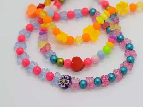 1. Desenvolvimento e integração da coordenação motora fina e da percepção sensorial : O manuseio das contas e elásticos exige movimentos precisos, aprimorando a destreza e a coordenação entre mãos e olhos. A diversidade de texturas, formas e cores das contas estimula diferentes sentidos, promovendo a integração sensorial. 2. Atenção e concentração: A atividade exige foco prolongado, desenvolvendo habilidades de atenção sustentada e seletiva. 3. Funções executivas: O processo de criar um padrão ou sequência requer habilidades de planejamento, organização e solução de problemas. 4. Memória de trabalho: Montar a pulseira requer a retenção de informações sobre padrões, cores e sequência, estimulando a memória operacional. 5. Lateralidade cerebral: Ativar tanto a parte lógica (padrões e sequência) quanto a criativa (design e estética) promove a integração entre os hemisférios cerebrais. 6. Resolução de problemas: Encontrar maneiras de montar a pulseira conforme o desejado exige habilidade de resolver pequenos desafios ao longo do processo. 7. Habilidades matemáticas: Contar as contas, criar padrões e medir o comprimento do elástico são formas de reforçar conceitos matemáticos como contagem, sequência e simetria.